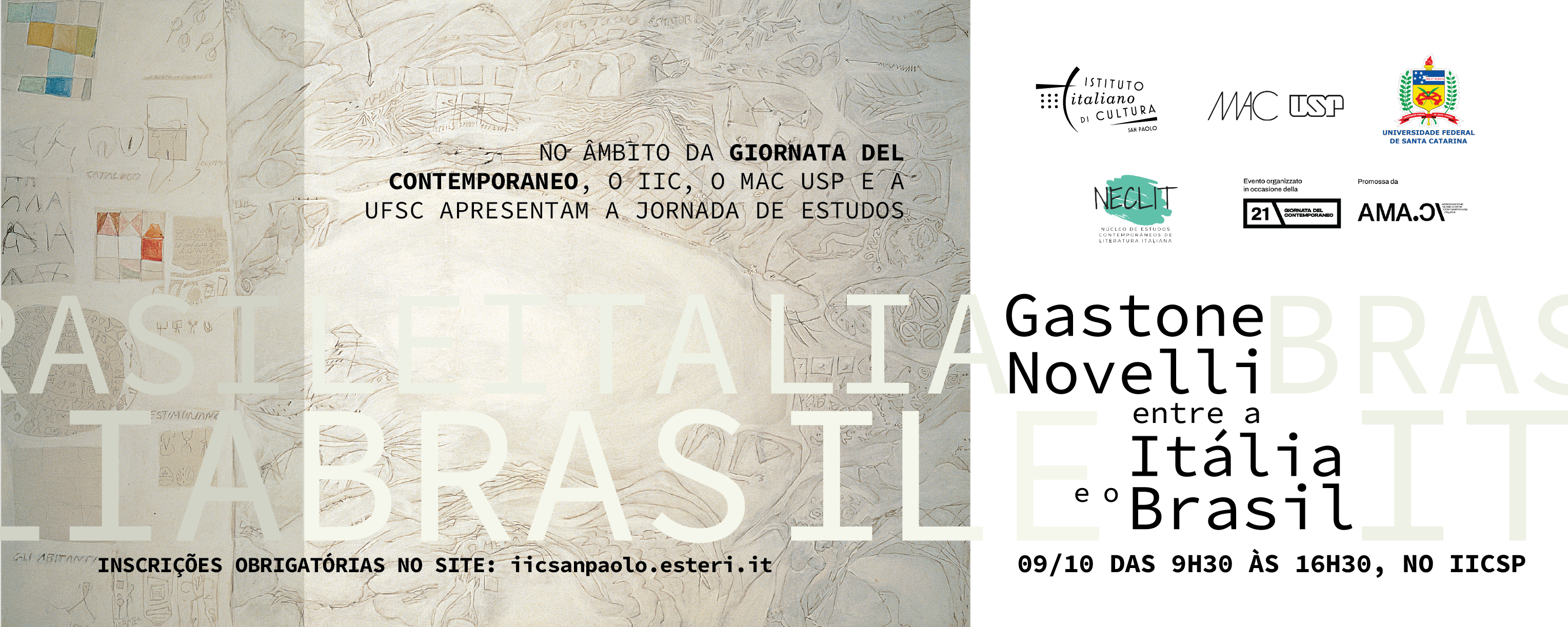 O Instituto Italiano de Cultura de São Paulo (IICSP), o Museu de Arte Contemporânea da USP (MAC USP) e a Universidade Federal de Santa Catarina (UFSC) promovem no dia 9 de outubro a jornada de estudos “Gastone Novelli entre a Itália e o Brasil”. O evento, que acontece das 9h30 às 16h30 na sede do IICSP, integra a programação da Giornata del Contemporaneo e funciona como atividade paralela à mostra “A arte de viver ao Sol: Gastone Novelli no Brasil”.
